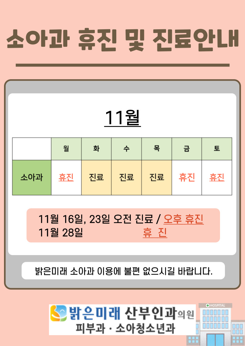 [진료안내] 11월 소아과 단축진료 안내